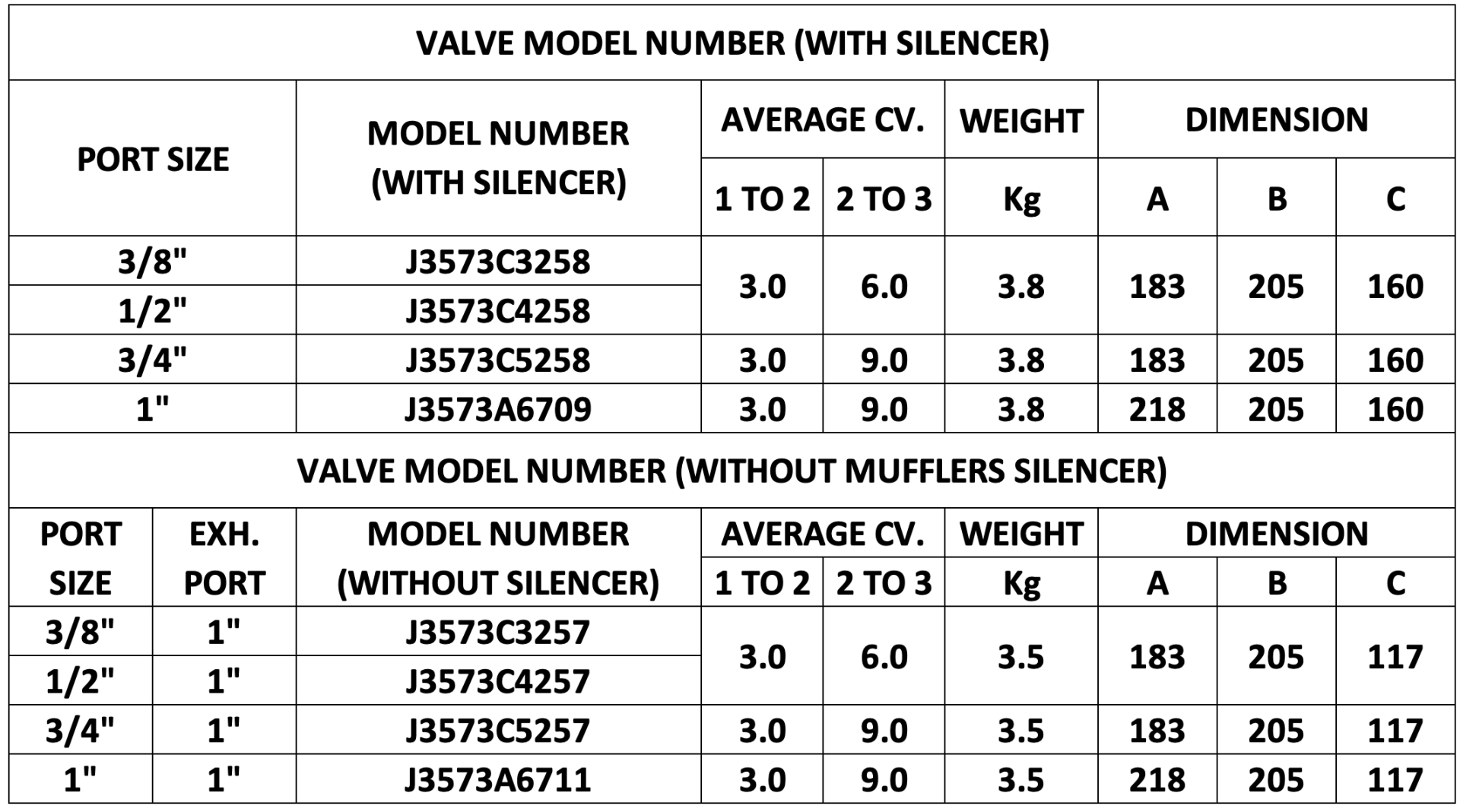 | Pilot Solenoid | : Two,rated for continuous duty. |