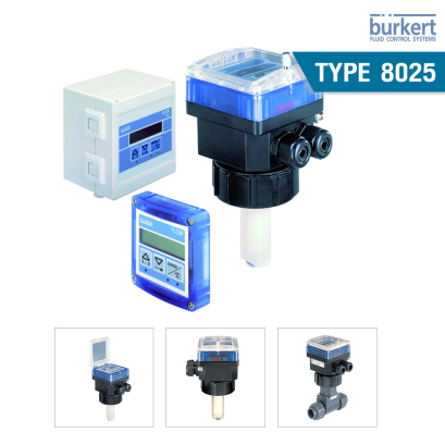 BURKERT TYPE 8025 | Insertion flowmeter or batch controller with paddle wheel and flow transmitter or remote batch controller