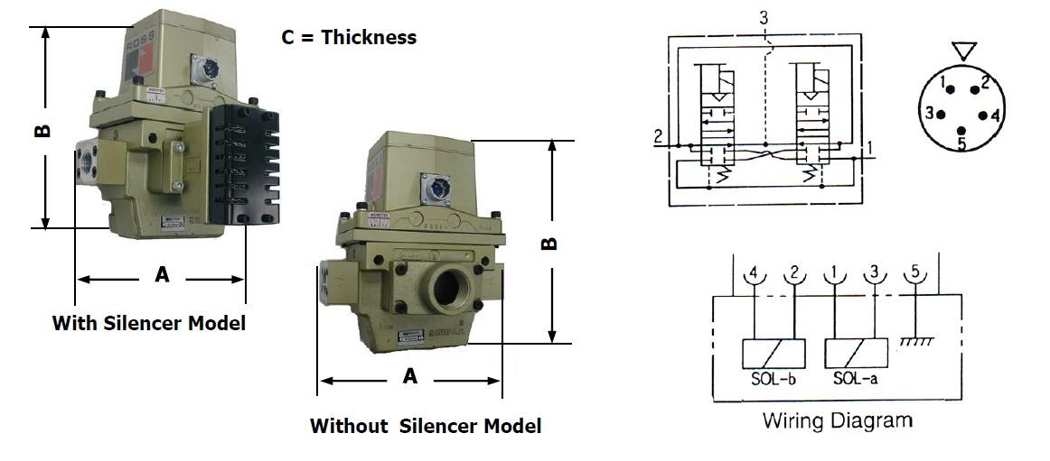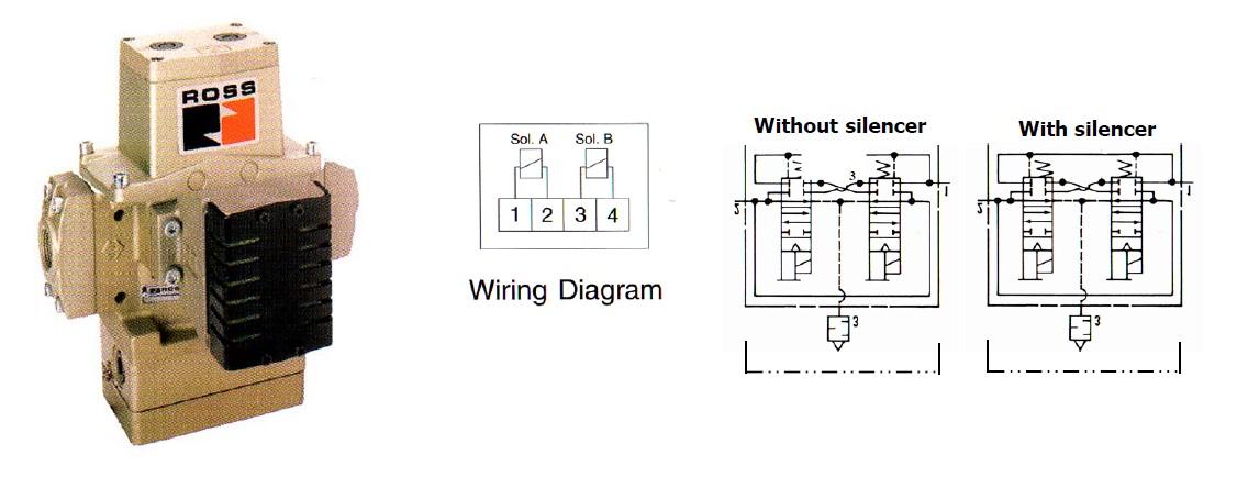 Press Control Double Valves จาก ROSS มีองค์ประกอบวาล์วสองตัวที่ควบคุมอย่างอิสระโดยวาล์วนำร่องโซลินอยด์สองตัว องค์ประกอบของวาล์วทั้งสองใช้พอร์ตทางเข้า ทางออก และไอเสียร่วมกัน เมื่อวาล์วนำร่องทำงานพร้อมกัน องค์ประกอบหลักทั้งสองจะทำงานพร้อมกัน ดังนั้นในระหว่างการทำงานปกติ วาล์วจะทำงานเหมือนกับว่าเป็นวาล์วสามทางที่มีองค์ประกอบเดียว