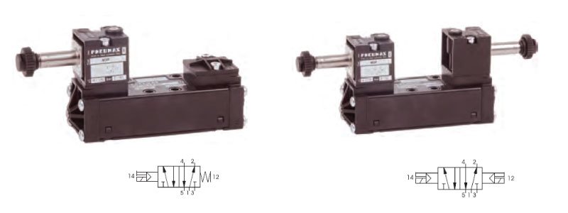 To Increase the range of ISO 5599/1 Solenoid valves, we have added the new ISO-M12 series. These are available in three sizes, size 1, size 2 and size 3 with flow rates from 900 NI/min for size 1 up to the 3600 NI/min for size 3. The standard features of the ISO valves are still included, however, they are now combined with a M12 electrical connector located in the middle of the valve to manage the electrical signals. Versions are available to suit valves with both single and double 24VDC solenoids complete with IP65 protection, in addition all version are supplied with LED indicators. | Pneumax ISO valves